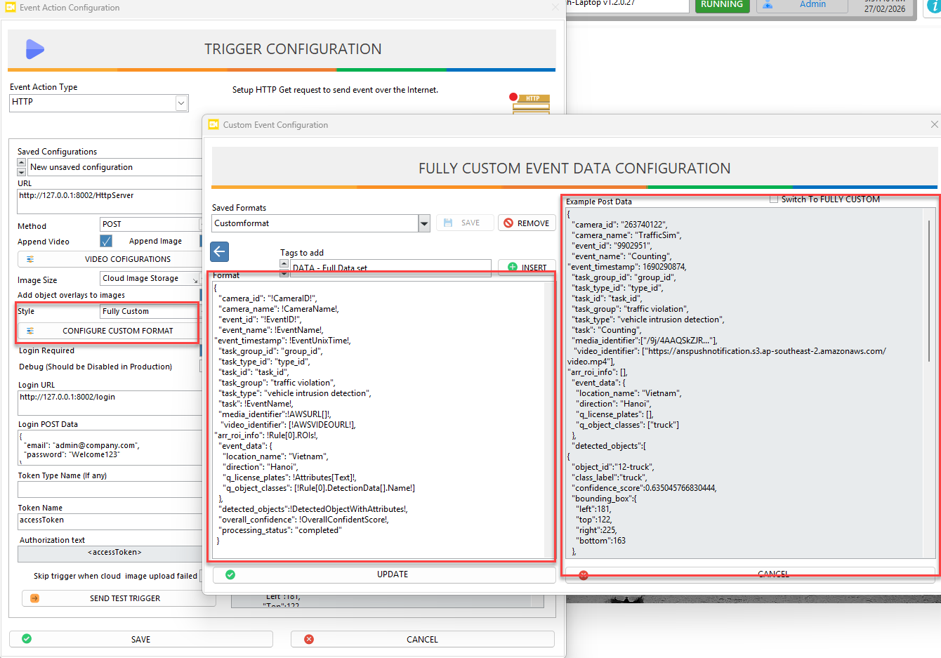 - Dynamic tags (e.g., camera ID, event name, confidence score) are automatically replaced with actual values when the event occurs.