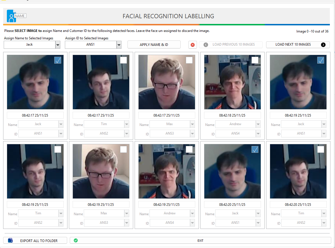 Once the recording task is finished, press View Images to access the captured faces