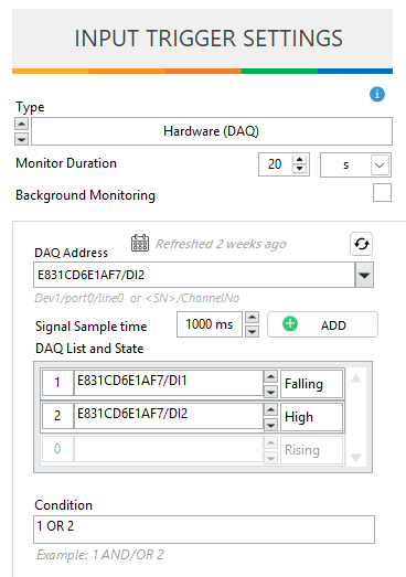 - DAQ Address: Scan and select avaliable digital inputs (DI) on the network. Press