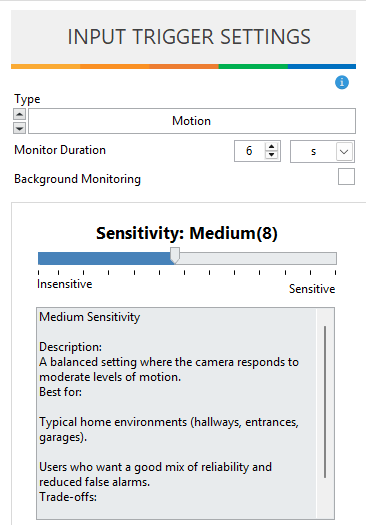 The Motion Trigger option allows the system to execute a task when motion is detected by the camera.