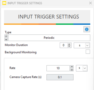 - Rate: How often the system sends a trigger to execute the task. (Note: the rate cannot be faster than the camera acquisition rate)