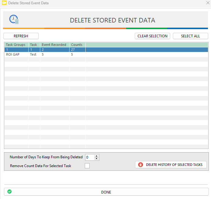 Delete History Of Selected Tasksto delete event recorded based on your selection