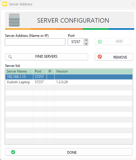 Server Configdialog, you can:- Scan or manually add new servers in the network